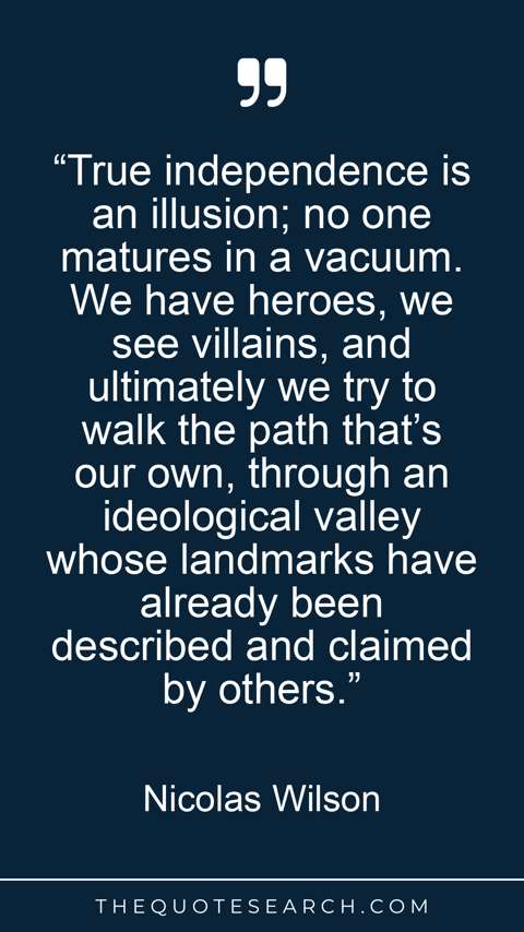 “True independence is an illusion; no one matures in a vacuum. We have heroes, we see villains, and ultimately we try to walk the path that’s our own, through an ideological valley whose landmarks have already been described and claimed by others.”