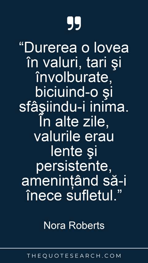“Durerea o lovea în valuri, tari şi învolburate, biciuind-o şi sfâşiindu-i inima. În alte zile, valurile erau lente şi persistente, ameninţând să-i înece sufletul.”