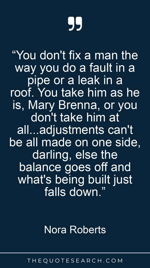 “You don't fix a man the way you do a fault in a pipe or a leak in a roof. You take him as he is, Mary Brenna, or you don't take him at all...adjustments can't be all made on one side, darling, else the balance goes off and what's being built just falls down.”