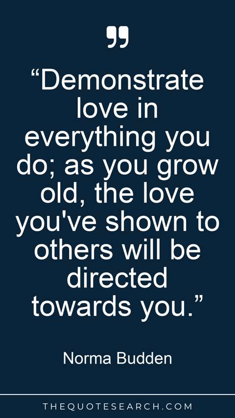 “Demonstrate love in everything you do; as you grow old, the love you've shown to others will be directed towards you.”