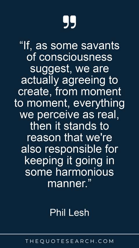 “If, as some savants of consciousness suggest, we are actually agreeing to create, from moment to moment, everything we perceive as real, then it stands to reason that we're also responsible for keeping it going in some harmonious manner.”