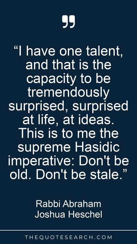 “I have one talent, and that is the capacity to be tremendously surprised, surprised at life, at ideas. This is to me the supreme Hasidic imperative: Don't be old. Don't be stale.”