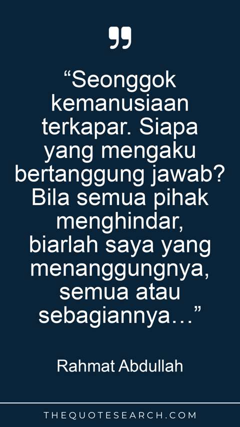 “Seonggok kemanusiaan terkapar. Siapa yang mengaku bertanggung jawab? Bila semua pihak menghindar, biarlah saya yang menanggungnya, semua atau sebagiannya…”