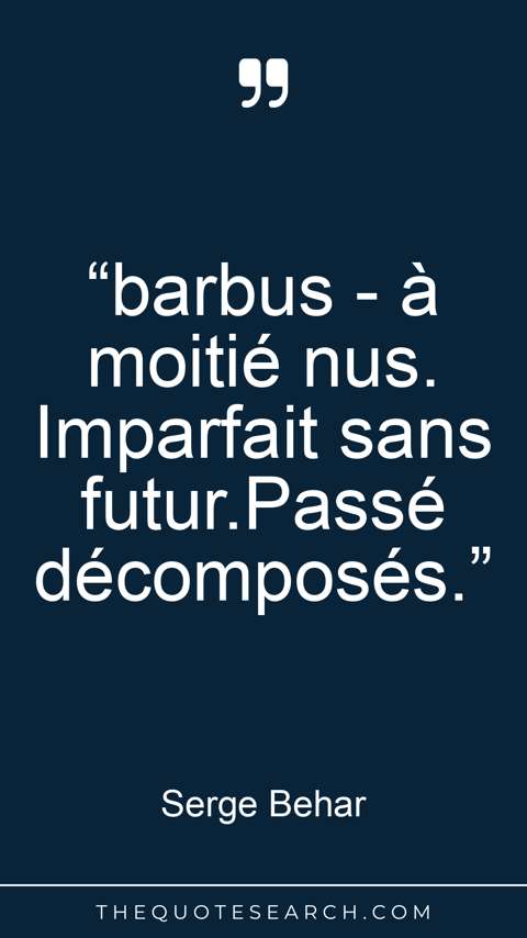 “barbus - à moitié nus. Imparfait sans futur.Passé décomposés.”