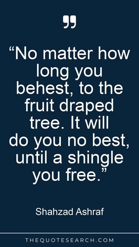 “No matter how long you behest, to the fruit draped tree. It will do you no best, until a shingle you free.”