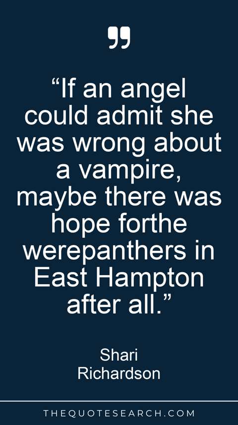 “If an angel could admit she was wrong about a vampire, maybe there was hope forthe werepanthers in East Hampton after all.”