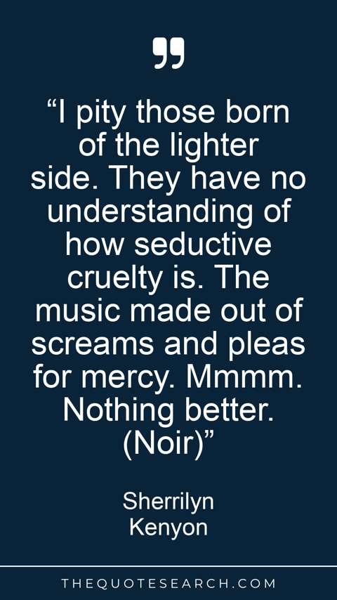 “I pity those born of the lighter side. They have no understanding of how seductive cruelty is. The music made out of screams and pleas for mercy. Mmmm. Nothing better. (Noir)”