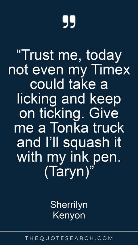 “Trust me, today not even my Timex could take a licking and keep on ticking. Give me a Tonka truck and I’ll squash it with my ink pen. (Taryn)”