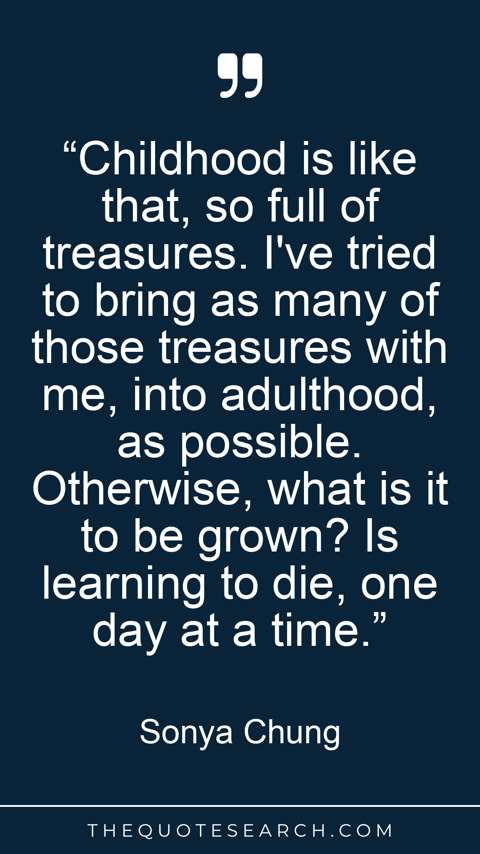 “Childhood is like that, so full of treasures. I've tried to bring as many of those treasures with me, into adulthood, as possible. Otherwise, what is it to be grown? Is learning to die, one day at a time.”
