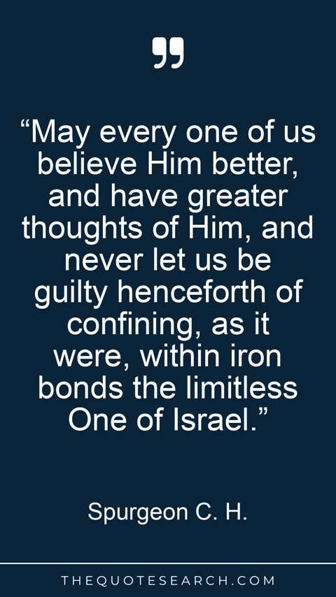 “May every one of us believe Him better, and have greater thoughts of Him, and never let us be guilty henceforth of confining, as it were, within iron bonds the limitless One of Israel.”