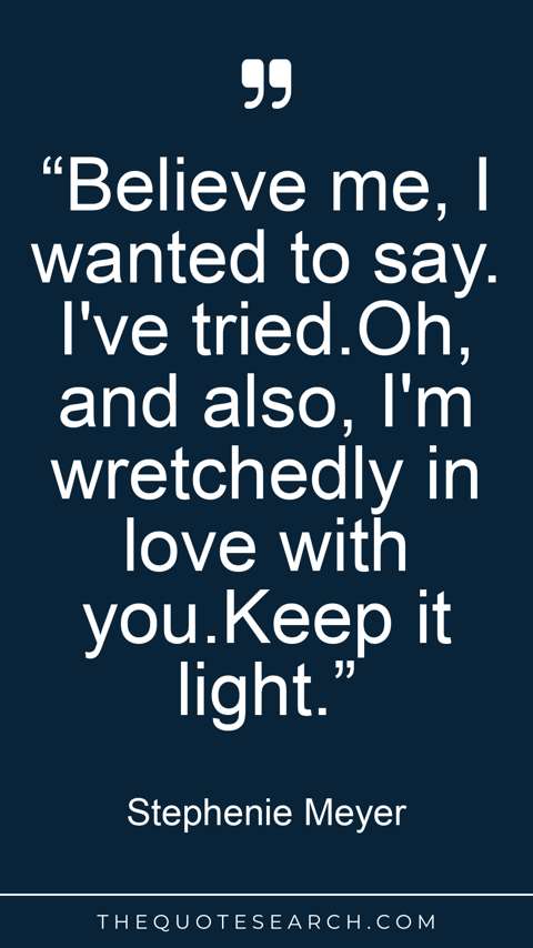 “Believe me, I wanted to say. I've tried.Oh, and also, I'm wretchedly in love with you.Keep it light.”