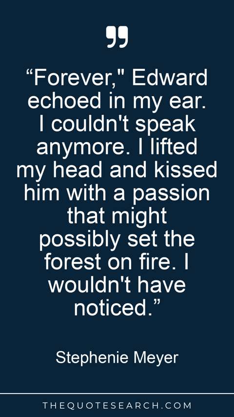 “Forever," Edward echoed in my ear. I couldn't speak anymore. I lifted my head and kissed him with a passion that might possibly set the forest on fire. I wouldn't have noticed.”