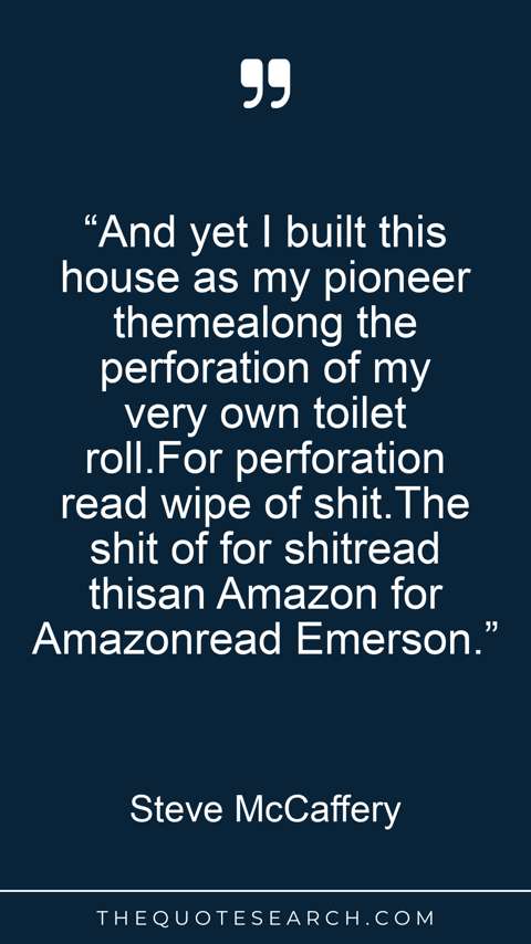 “And yet I built this house as my pioneer themealong the perforation of my very own toilet roll.For perforation read wipe of shit.The shit of for shitread thisan Amazon for Amazonread Emerson.”
