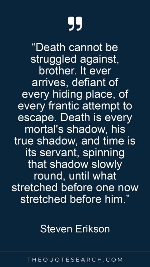 “Death cannot be struggled against, brother. It ever arrives, defiant of every hiding place, of every frantic attempt to escape. Death is every mortal's shadow, his true shadow, and time is its servant, spinning that shadow slowly round, until what stretched before one now stretched before him.”