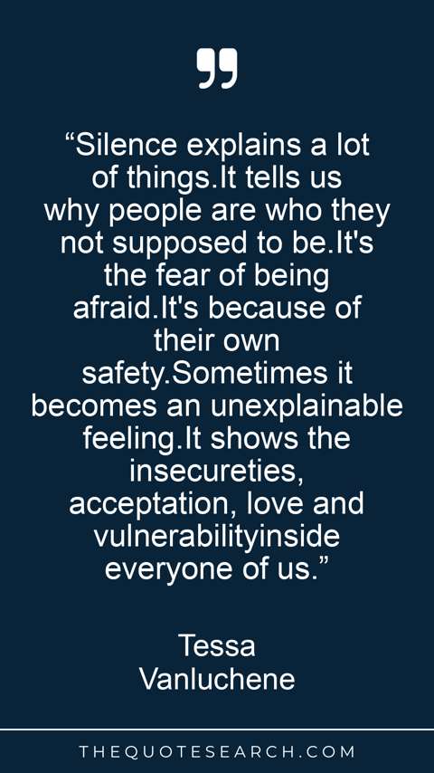 “Silence explains a lot of things.It tells us why people are who they not supposed to be.It's the fear of being afraid.It's because of their own safety.Sometimes it becomes an unexplainable feeling.It shows the insecureties, acceptation, love and vulnerabilityinside everyone of us.”