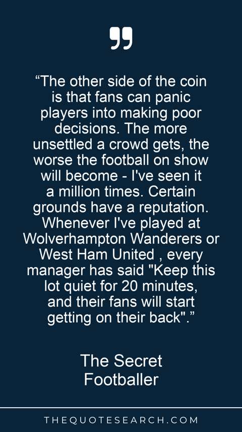 “The other side of the coin is that fans can panic players into making poor decisions. The more unsettled a crowd gets, the worse the football on show will become - I've seen it a million times. Certain grounds have a reputation. Whenever I've played at Wolverhampton Wanderers or West Ham United , every manager has said "Keep this lot quiet for 20 minutes, and their fans will start getting on their back".”
