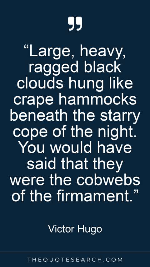“Large, heavy, ragged black clouds hung like crape hammocks beneath the starry cope of the night. You would have said that they were the cobwebs of the firmament.”
