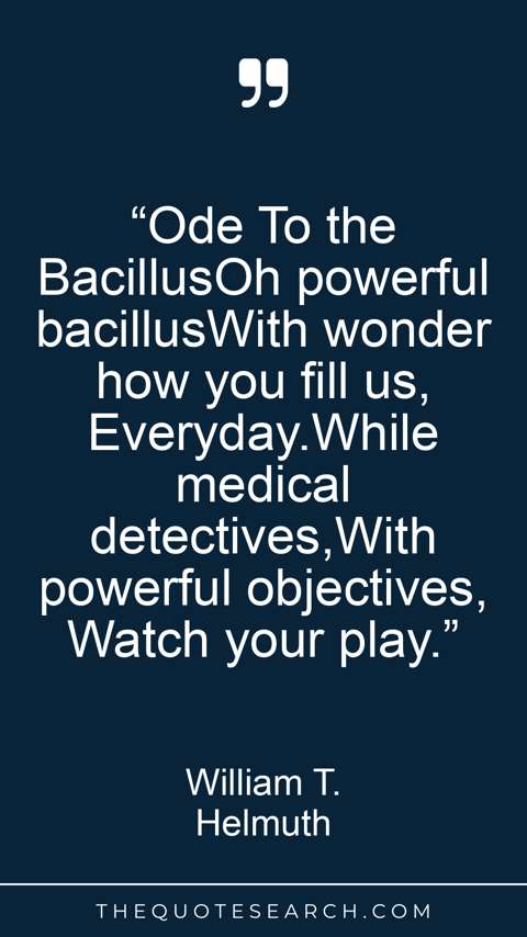 “Ode To the BacillusOh powerful bacillusWith wonder how you fill us, Everyday.While medical detectives,With powerful objectives, Watch your play.”