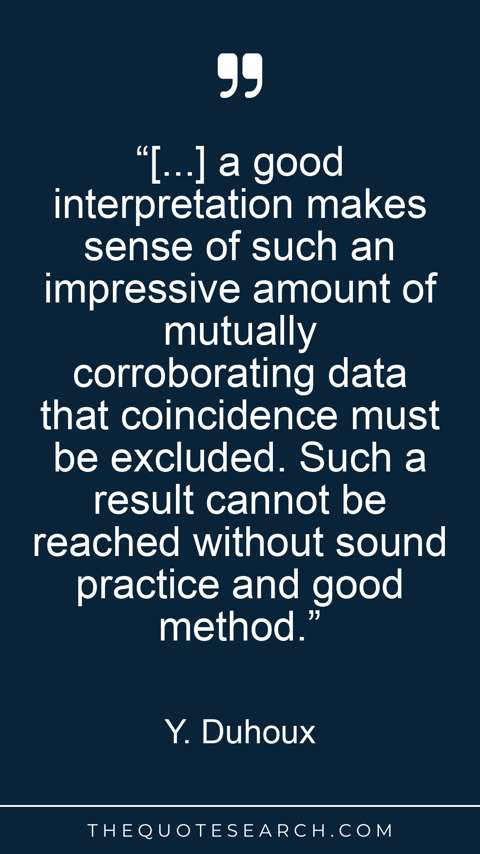 “[...] a good interpretation makes sense of such an impressive amount of mutually corroborating data that coincidence must be excluded. Such a result cannot be reached without sound practice and good method.”